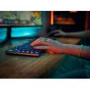 Logitech G915 X je zasnovana kot zmogljiva mehanska tipkovnica z nizkoprofilnimi stikali, ki omogočajo hitro aktivacijo in natančen nadzor. Povezava prek USB kabla zagotavlja stabilno in zanesljivo delovanje brez zakasnitev, kar je ključno pri igranju iger in intenzivnem delu.