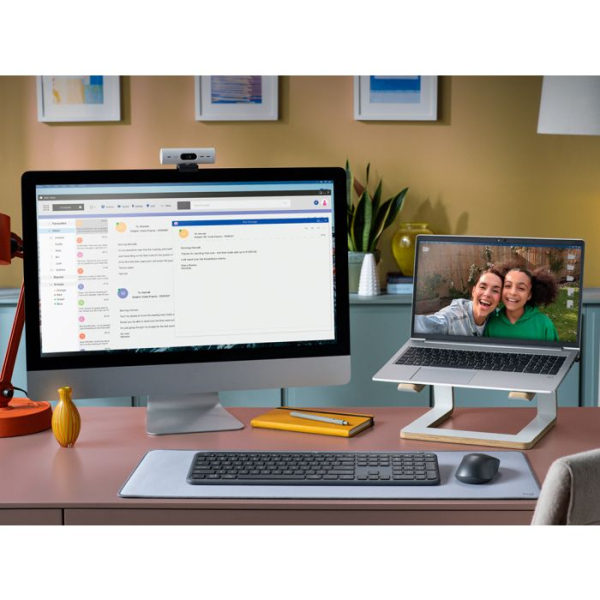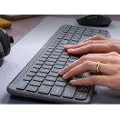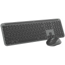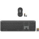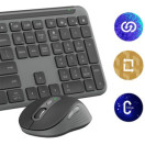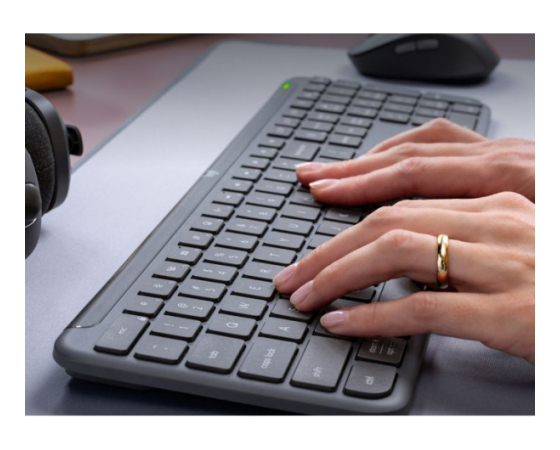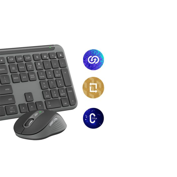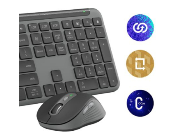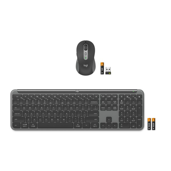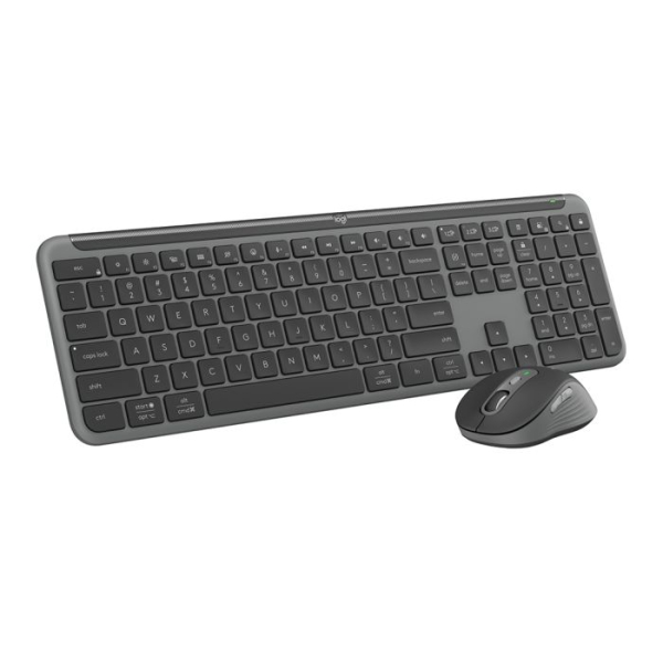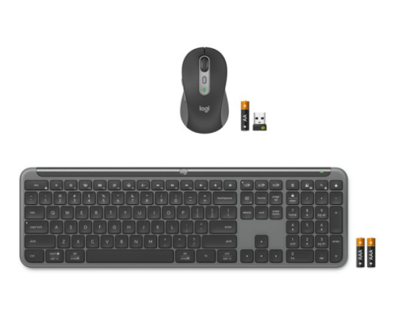 Logitech Signature Slim Combo MK950 je popoln brezžični komplet za vsakodnevno delo, ki združuje polno tipkovnico z numeričnim delom in ergonomsko miško. Tipkovnica ima tihe, nizkoprofilne tipke in nastavljive nogice za optimalen naklon, medtem ko miška uporablja opticalni senzor z do 1000 dpi ter SmartWheel tehnologijo za gladko pomikanje. Oba dela se povežeta brezžično preko Bluetooth ali Logi Bolt USB-sprejemnika in omogočata preprosto preklapljanje med napravami (Easy-Switch). Z dolgo življenjsko dobo baterije in udobnim, minimalističnim dizajnom je komplet primeren za domačo in pisarniško rabo.