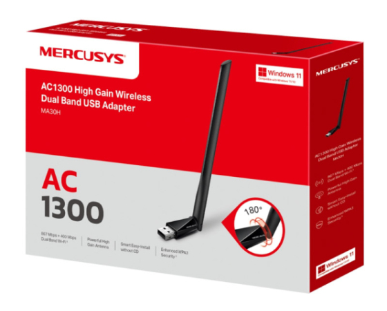 | Vsebina paketa: | AC1300 visokozmogljiv brezžični dvopasovni USB adapter ( MA30H ) navodila za hitro namestitev |