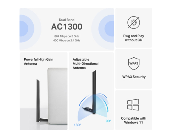 | Dodatno: | Podprti operacijski sistemi vključujejo 11/10 (32/64-bitni) Brezžična varnost : WPA-PSK/WPA2-PSK/WPA3-SAE |