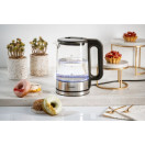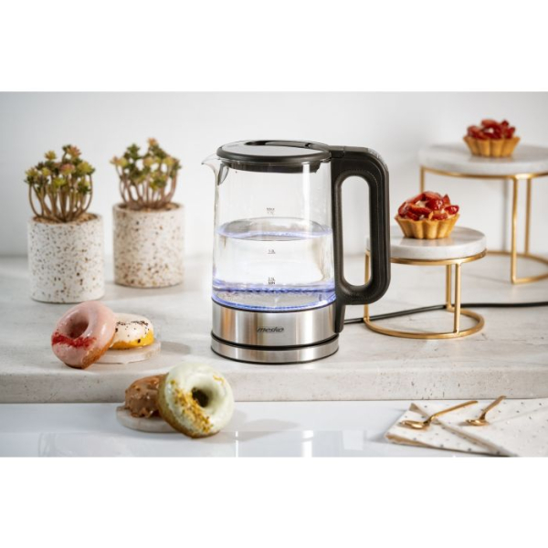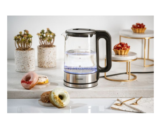 Stekleni grelnik vode s funkcijo nastavitve temperature je naprava, ki bi morala biti prisotna v vsakem domu. S tem grelnikom lahko izbirate med več temperaturnimi razponi od 60 do 100 stopinj Celzija, kar omogoča prilagajanje toplote vode glede na vrsto čaja ali zelišč, ki jih kuhate. Grelnik je opremljen s funkcijo vzdrževanja temperature. Eleganten zaključek z nerjavečim jeklom, očarljiv izliv, priročen ročaj za odpiranje in vrtljiva osnova omogočajo enostavnejšo uporabo naprave, tudi za levičarje in otroke. Zanimivi poudarki so tudi različni odtenki osvetlitve vode, ki se spreminjajo glede na nastavljeno temperaturo, ter zvočni signal ob zagonu in po vretju.