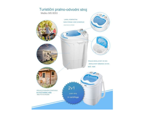 Ko morate oprati svoja oblačila, nimate vedno dostopa do standardnega pralnega stroja ali pralnice: tak primer se lahko pojavi med daljšim potovanjem, kampiranjem ali celo doma, ko se vaš standardni pralni stroj pokvari. Včasih se zgodi tudi, da morate na hitro oprati nekaj stvari in je zagon pralnega stroja neekološki, nevaren in neekonomičen. V vseh teh primerih je lahko rešitev mini pralni stroj AD8051. Je majhen in lahek, zato ga je enostavno prenašati. Ker ne zavzema veliko prostora, ga lahko namestite tudi v avtodom ali majhno stanovanje. Ta lahek in kompakten pralni stroj ima zmogljivost 3 kg. Odličen je za pranje majhnih količin perila, tudi občutljivih tkanin. Njegov pralni program je kratek, saj traja le 15 minut. Naprava ima nizko porabo vode in energije ter je enostavna za uporabo. Ima tudi program za ožemanje, ki ga lahko uporabite po končanem pranju oblačil.