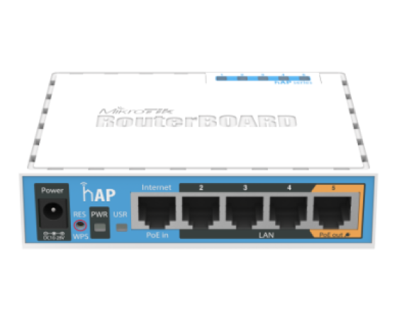 hAP zagotavlja izhodno funkcijo PoE za vrata #5 - lahko napaja druge naprave, ki podpirajo PoE, z enako napetostjo, kot je priključena na enoto. Največja obremenitev vrat je 500 mA.