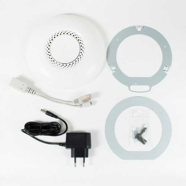 V paketu je vključeno vse, kar potebujete za začetek uporabe, kit za pritrditev na steno / strop, injektor PoE, napajalnik in celo vijaki in vijačni vložki.