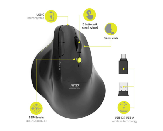 Miška PORT ERGO SOFT WL/BT, polnilna