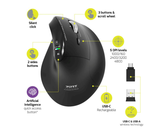 Miška PORT ergonomska Ergo auditor črna - 910204