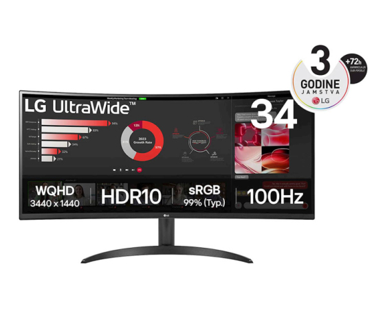 Monitor LG 34" 34WR50QK-B UltraWide ukrivljen, VA, 3440x1440, 2x HDMI, DP - 34WR50QK-B.AEU