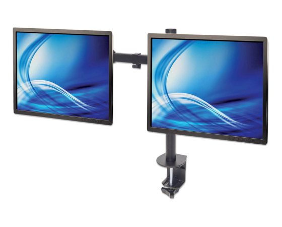 Namizni nosilec za 2 monitorja 13''-32'' MANHATTAN, 8kg, tro sklepni, naklon ±45°, črne barve