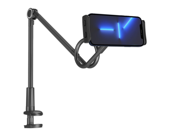Uživajte v svoji najljubši TV-seriji ali e-knjigi, medtem ko udobno ležite na postelji ali kavču. Fleksibilno držalo za telefon ali tablico Wozinsky WTHBK5 je enostavno prilagoditi želenemu položaju: zahvaljujoč fleksibilni roki ga lahko zavrtite v katero koli smer. Pomembno je, da je držalo kljub svoji fleksibilnosti zelo stabilno. Gre za univerzalni pripomoček, ki drži tako telefone kot tablice z diagonalo 4,7–11 palcev. Pritrdite ga lahko na kateri koli pult, mizo, mizo ali vzglavje postelje.