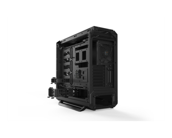 Ohišje PSU popolnoma pokriva kable, PSU in vsebuje dvojno ohišje HDD. Pokrovne plošče so ločeno snemljive, da namestite 140 mm ventilator na vrh. Z majhnim ločenim pokrovom lahko spredaj namestite 360mm ali 420mm radiator. Z nosilcem PSU lahko napajalno enoto enostavno namestite od zadaj.