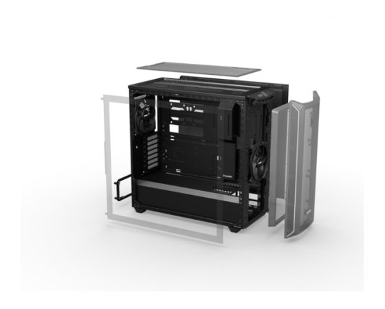 Shadow Base 800 midiATX z optimiziranim pretokom zraka, ponuja tiho delovanje z dovolj prostora za komponente, kot so grafične kartice, 420 mm radiatorji ali matične plošče E-ATX.