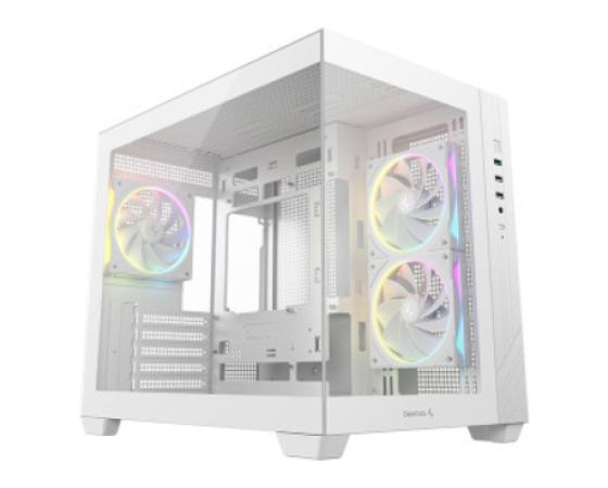 Ohišje je opremljeno z dvema ventilatorjema serije FL z obrnjenimi lopaticami na strani in enim standardnim na zadnji strani, ki skupaj tvorijo horizontalni prezračevalni kanal za učinkovito hlajenje. DeepCoolov edinstveni sistem osvetlitve zagotavlja enakomerno osvetlitev v celotnem ohišju.
