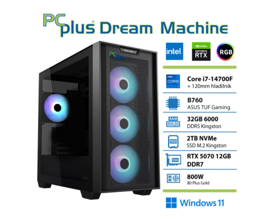 PCPLUS Dream machine Intel I7-14700F 32GB 2TB NVMe SSD RTX 5070 12GB Windows 11 Home gaming namizni računalnik