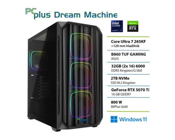 PCPLUS Dream Machine Ultra 7 265KF 32GB 2TB NVMe SSD RTX 5070 Ti 16GB Windows 11 Home gaming namizni računalnik