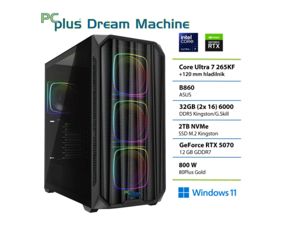 PCPLUS Dream Machine Ultra 7 265KF 32GB 2TB NVMe SSD RTX 5070 12GB Windows 11 Home gaming namizni računalnik