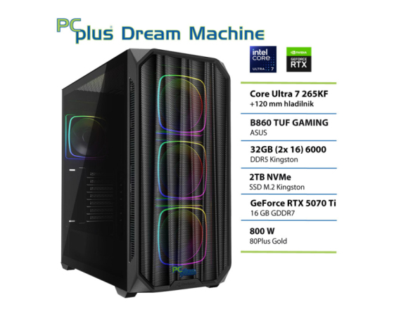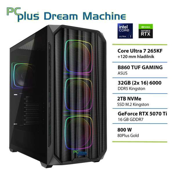 PCPLUS Dream Machine Ultra 7 265KF 32GB 2TB NVMe SSD RTX 5070 Ti 16GB gaming namizni računalnik