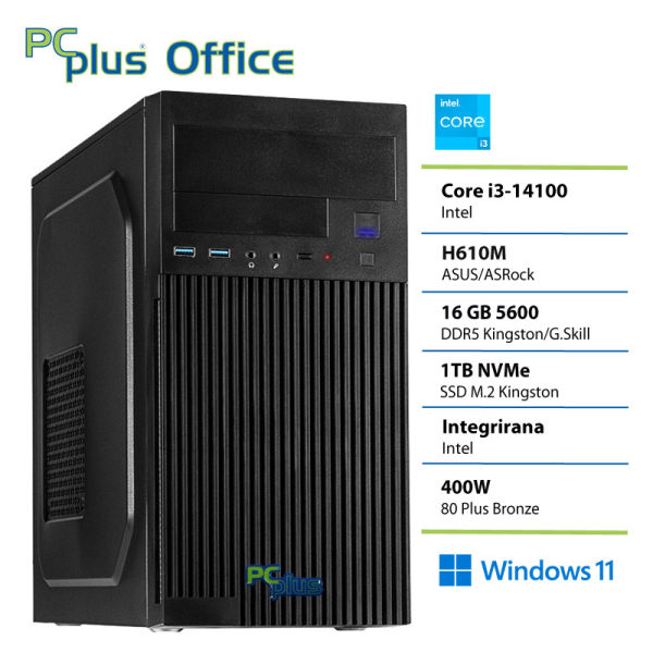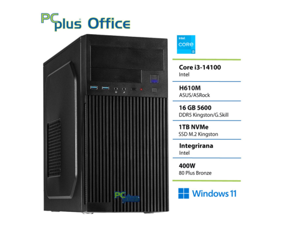 PCPLUS e-office i3-14100 16GB DDR5 1TB Windows 11 Home namizni računalnik