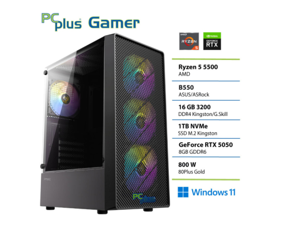 PCPLUS Gamer Ryzen 5 5500 16GB 1TB GeForce RTX 5050 8GB Windows 11 Home gaming namizni računalnik