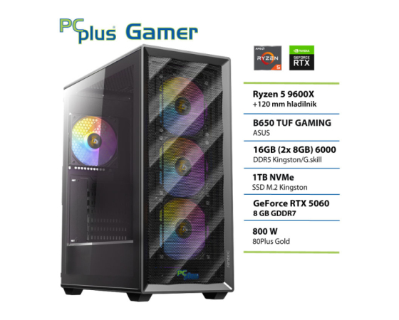 PCPLUS Gamer Ryzen 5 9600X 16GB 1TB NVMe SSD RTX 5060 8GB gaming namizni računalnik