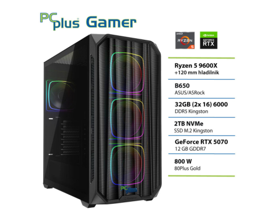 PCPLUS Gamer Ryzen 5 9600X 32GB 2TB NVMe SSD RTX 5070 12GB gaming namizni računalnik