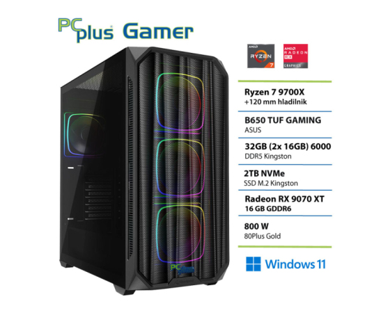 PCPLUS Gamer Ryzen 7 9700X 32GB 2TB NVMe SSD RX 9070 XT 16GB Windows 11 Home gaming namizni računalnik
