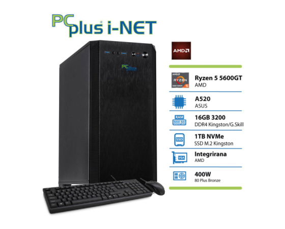 PCPLUS i-NET Ryzen 5 5600GT 16GB 1TB NVMe M.2 SSD miška tipkovnica namizni računalnik