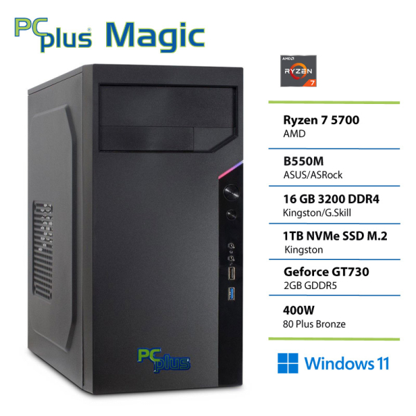 PCPLUS Magic Ryzen 7 5700 16GB 1TB SSD GT730 Windows 11 Home namizni računalnik