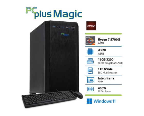 PCPLUS Magic Ryzen 7 5700G 16GB 1TB NVMe M.2 SSD miška tipkovnica Windows 11 Home namizni računalnik
