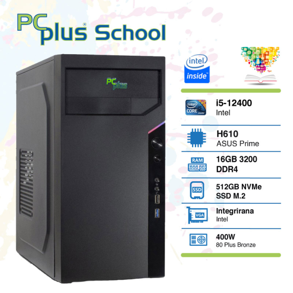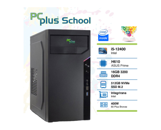 PCPLUS School i5-12400 16GB 512GB NVMe SSD Windows 11 PRO EDU namizni računalnik