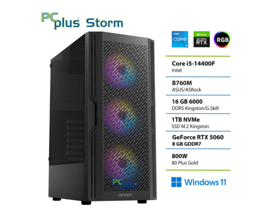 PCPLUS Storm Core i5-14400F 16GB 1TB SSD RTX 5060 8GB Windows 11 Home gaming namizni računalnik