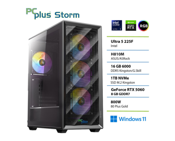 PCPLUS Storm Ultra 5 225F 16GB 1TB NVMe SSD GeForce RTX 5060 8GB Windows 11 Home gaming namizni računalnik