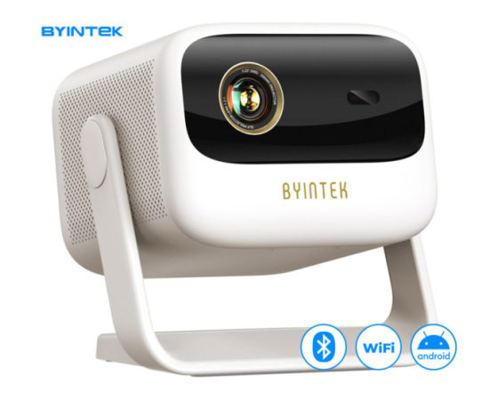 Podjetje BYINTEK predstavlja najnovejši in ultra zmogljiv prenosni Android projektor UFO U90 Max. Projektor kompaktnih dimenzij in modernega izgleda v sebi skriva odlične lastnosti in opremo, ki bo poskrbela za najboljšo uporabniško izkušnjo. Ne verjamete? Prepričajte se sami in pustite, da projektor poskrbi za predvajanje in ogled vaših najljubših vsebin, kjerkoli in kadarkoli!