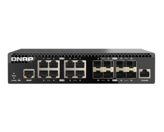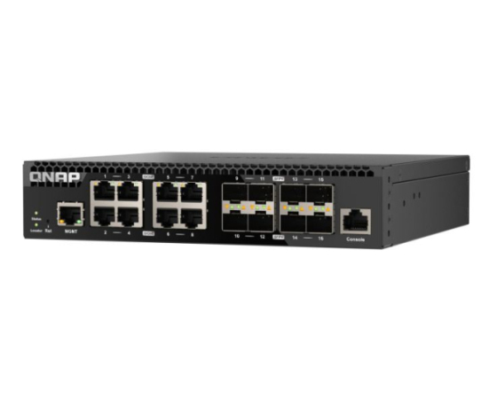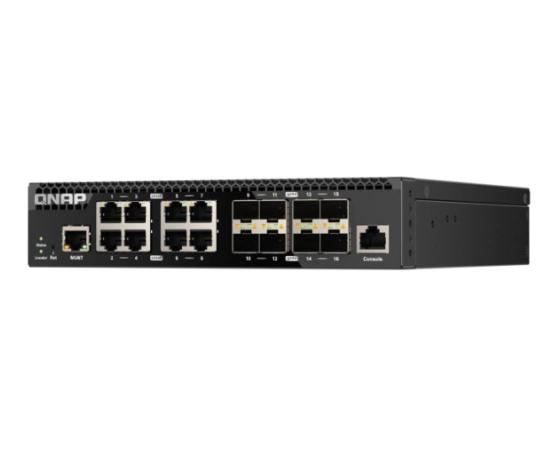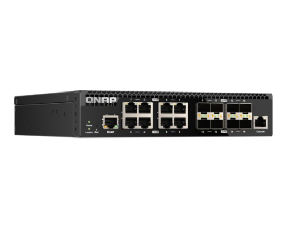 Več vrat 10GbE in več prihranka prostora po dostopni ceni. QNAP QSW-M3216R-8S8T je upravljano stikalo L2 polovične širine za namestitev v omaro z osmimi optičnimi vrati 10GbE SFP+ in osmimi vrati 10GbE RJ45. QSW-M3216R-8S8T s podporo za preklapljanje ravni 2 in upravljanje omrežja prek uporabniku prijaznega spletnega uporabniškega vmesnika ponuja prilagodljivo uvajanje v omrežnih okoljih visoke hitrosti in zagotavlja osnovno rešitev za upravljanje omrežja. Z zasnovo polovične širine lahko QSW-M3216R-8S8T priročno postavite v delovna okolja, ne da bi zavzeli preveč prostora, dva pa lahko namestite v eno samo omaro 1U. QSW-M3216R-8S8T je izdelan v Tajvanu (MIT) in zagotavlja visokokakovostno in zanesljivo omrežno rešitev.