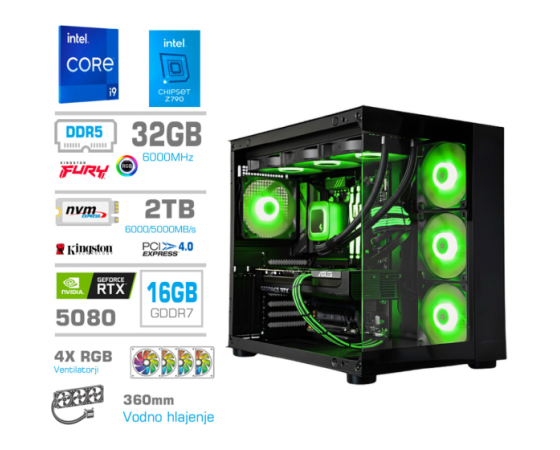 | Zasnovano za ekstremno 360mm vodno hlajenje Da bi zagotovili neprekinjeno vrhunsko delovanje, so vsi računalniki v seriji MEGA S5 opremljeni s 360mm vodnim hlajenjem procesorja. Ta napredna rešitev omogoča učinkovito odvajanje toplote tudi pri najmočnejših Intel procesorjih. Z našimi sistemi na osnovi matičnih plošč B860 ali Z790 je vaš računalnik pripravljen na najtežje izzive. | ![]() |