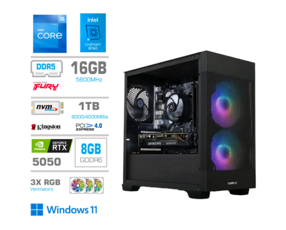 | Grafična kartica: | nVidia RTX5050 MSI Gaming OC 8GB GDDR6 |