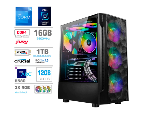 | Grafična kartica: | Intel Arc B580 Intel ARC Limited Edition 12GB GDDR6 |