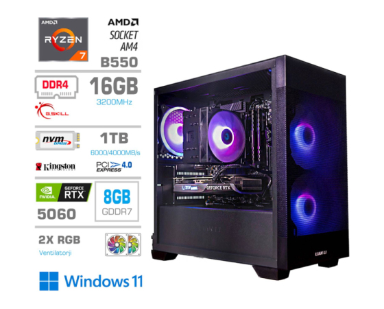 Računalnik PCX Exton R7 5700X 16GB 1TB RTX5060 W11 - PCX-GS7X-617587