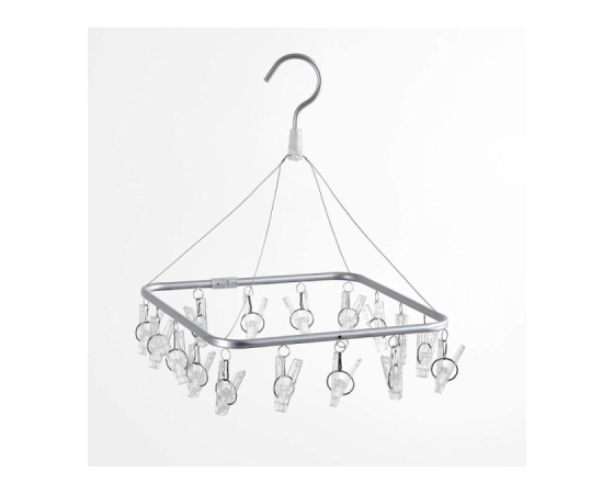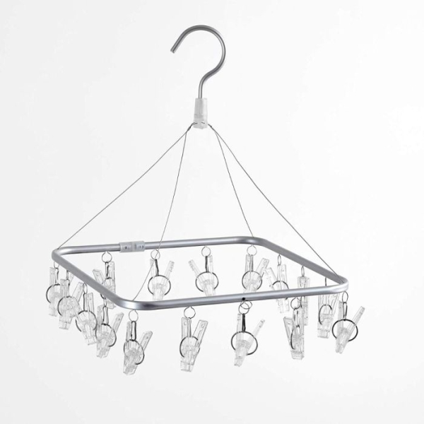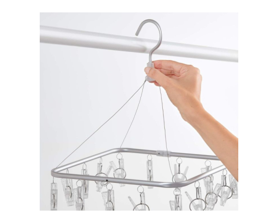 Praktična in kompaktna rešitev za sušenje manjših kosov perila – aluminijasta sušilna polica Rayen 0337 omogoča, da na majhnem prostoru obesite do 16 kosov oblačil. Idealna za nogavice, spodnje perilo in otroška oblačila. Zahvaljujoč vrtljivemu sistemu in vgrajenemu obešalniku jo lahko enostavno obesite na vrvico, balkon ali radiator – tako v notranjih kot zunanjih prostorih.