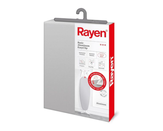 Rayen univerzalna prevleka za likalno desko 6152.11 je zasnovana za zagotavljanje popolnih rezultatov pri likanju. Izdelana je iz 100% bombaža z aluminijasto prevleko, flanelasto podlogo in peno, kar omogoča učinkovito odbojnost toplote in gladko drsenje likalnika. Sistem EasyClip omogoča enostavno prilagoditev in varno pritrditev na likalno desko.