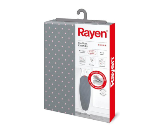 Z Rayen prevleko za likalno desko bo vaše likanje hitrejše, lažje in učinkovitejše! Izdelana je iz visokokakovostnega bombaža s sloji pene in filca, ki zagotavljajo mehko podlago in optimalen pretok pare. Zahvaljujoč mikroperforirani toplotno odporni tkanini je posebej zasnovana za parno likanje, s čimer omogoča bolj gladke in profesionalne rezultate.