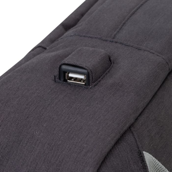 • Prenosno polnilno baterijo priključite v vrata USB ob strani nahrbtnika, da lahko svoje naprave polnite, ko ste na poti.