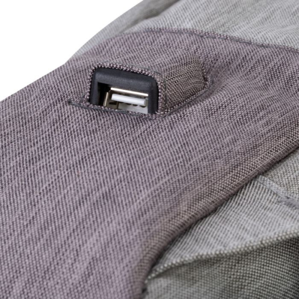 • Prenosno polnilno baterijo priključite v vrata USB ob strani nahrbtnika, da lahko svoje naprave polnite, ko ste na poti.