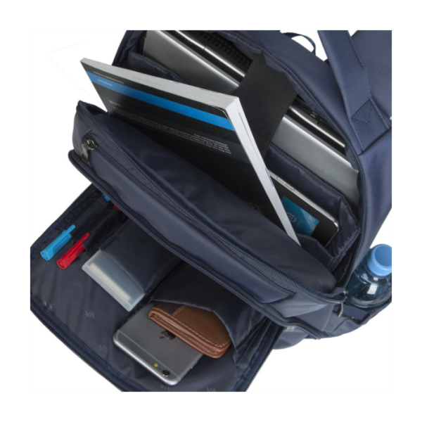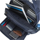 Notranjost je iz mehkih materialov, ki odlično ščitijo vsebino v nahrbtniku. V njem je poleg prostora za računalnik velikosti do 15,6 inch, tudi predal za osebne predmete, dokumente in tablico do velikosti 10.1, ter predal za telefon in drobnarije. Prednji žep omogoča hiter dostop do osebnih predmetov kot so denarnica, mobilni telefon... Dvojna zadrga omogoča hitro in enostavno odpiranje predalov.