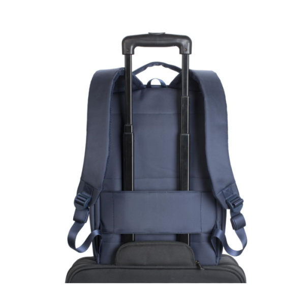 Naramnice so udobne in mehke, tako da bo nošenje tudi na dolgih potovanjih udobno in brezskrbno. Hrbtna stran je narejena iz zračnega materiala, za optimalno temperaturo med nošenjem nahrbtnika. Posebno zasnovan žep pa omogoča namestitev nahrbtnika na vse kovčke s kolesi.