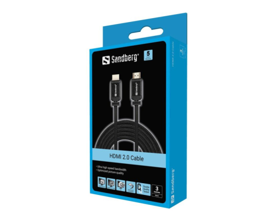 Kabel Sandberg HDMI 2.0 zagotavlja kristalno čist zvok in sliko v visoki ločljivosti. Popoln je za televizorje, igralne konzole, projektorje in digitalne sprejemnike ("streaming devices"). Omogoča stabilno, hitro in brezskrbno povezavo, ki preprosto deluje.