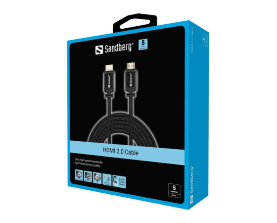 Kabel Sandberg HDMI 2.0 zagotavlja kristalno čist zvok in visoko ločljivost videa. Odličen je za televizorje, igralne konzole, projektorje in digitalne sprejemnike ("streaming devices"). Ponuja stabilno, hitro in zanesljivo povezavo, ki preprosto deluje.