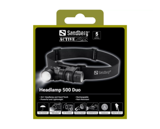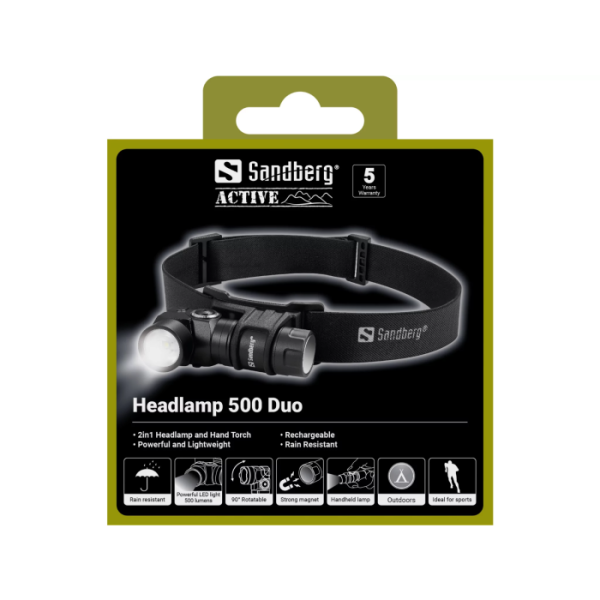 Sandberg Headlamp 500 Duo je zasnovana za uporabnike, ki potrebujejo zanesljivo in zmogljivo osvetlitev pri različnih aktivnostih. Opremljena je z dvema svetlobnima viroma, ki omogočata izbiro med širokim in usmerjenim snopom svetlobe, kar zagotavlja optimalno vidljivost v različnih situacijah. Primerna je za delo, tek, pohodništvo, kampiranje ali uporabo v temi.
