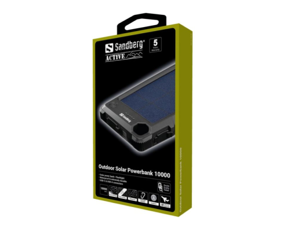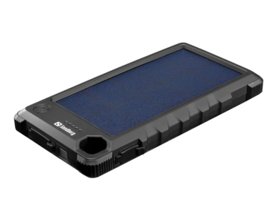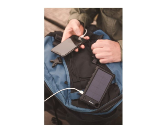 S Sandberg Outdoor Solar Powerbank 10000 mAh solarno prenosno baterijo lahko svoj pametni telefon napolnite do 4-krat. Kljub svoji zmogljivosti, je izjemno kompaktna in vašega nahrbtnika ne obremeni preveč. Prenosna baterija je opremljena z učinkovito solarno ploščo, ki ustvari dovolj energije za dodatno polnjenje vašega pametnega telefona na sončni dan. Prenosna baterija je tesno zaščitena v ohišju IP66, ki je varno v vseh vremenskih pogojih, prenese pa tudi ležanje v snegu, tresenje v nahrbtniku med prečkanjem reke ali padec v puščavski pesek.