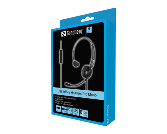 Slušalke z mikrofonom Sandberg USB Office Headset Pro Mono so zelo kakovostne in jih lahko uporabljate v domači pisarni, v službi, med učenjem itd. Mikrofon se nahaja na prilagodljivi roki, zato vas sogovornik sliši popolnoma jasno. Zvočnik na enem ušesu ponuja jasno predvajanje zvokov, drugo uho pa je prosto in sliši, kar se dogaja okoli vas. Diskretna in lahka zgradba z mehko ušesno blazinico in nastavljivim naglavnim trakom vam nudi optimalno udobje. Glasnost slušalk je z namenom varovanja vašega sluha tovarniško omejena na 118 dB. Slušalke z mikrofonom se priključijo v vhod USB in delajo takoj. Gumb za prilagoditev glasnosti na kablu.