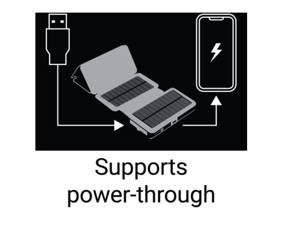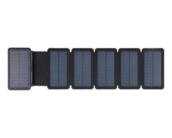 Ko ste daleč proč od vtičnice, lahko napajalnik hitro napolnite s pomočjo velikega zložljivega solarnega kolektorja iz 6 solarnih plošč. Na ta način boste lahko svojo opremo vedno napolnili. Prenosna baterija ima dva izhoda USB-A in en izhod USB-C PD 20 W za hitro polnjenje. Priložen je tudi karabin, s katerim lahko baterijo med solarnim polnjenjem obesite na šotor ali nahrbtnik. Solarne plošče lahko po potrebi pripnete ali odpnete. To je popolna rešitev za mobilno polnjenje na družinskem dopustu, pohodu ali kaki drugi pustolovščini.